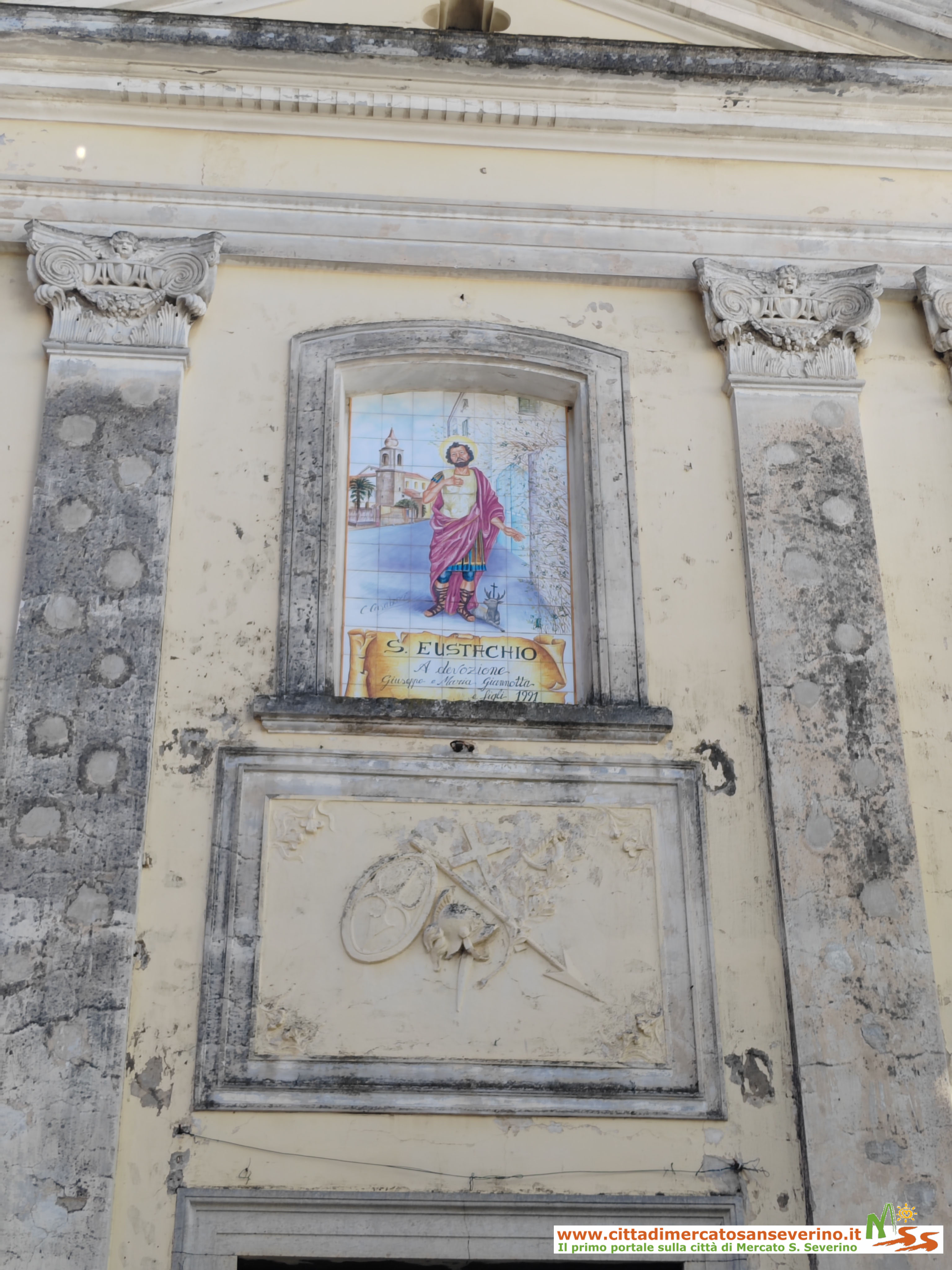 La notizia più antica della chiesa di S. Eustachio risale al 966. Nel 1564, a causa dello scarso numero di “figliani”, la chiesa di S. Eustachio è unita a quella di S. Felice. Nel 1823 il parroco e gli eletti della frazione, in occasione del passaggio di Sua Altezza Reale i Principe delle Calabrie, chiedono un contributo al comune di Mercato S. Severino per il restauro della facciata della chiesa. Nel 1897 la chiesa di S. Eustachio necessita di urgenti lavori di restauro e del pavimento, che manca del tutto, inoltre la canonica minaccia rovina.